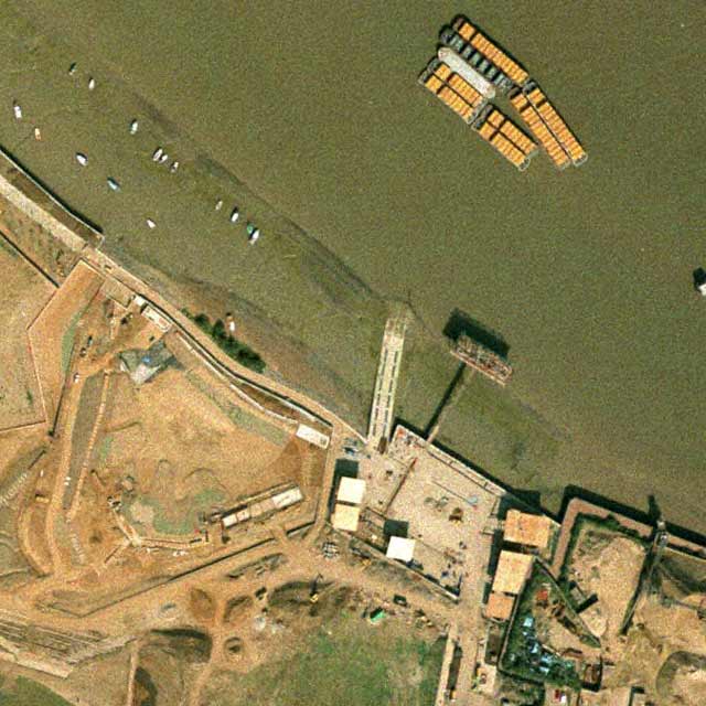 Work began in early December 1999 on Phase 1A of the Village. A visit to the site on July 3rd 1999 revealed that road infrastructure and much of the basic planting of roadsides and the Central Park area had been completed, but there was no sign of any building work whatever except at the site of the Greenwich Yacht Club, located at the extreme S.E. tip of the site on the river bank at the old Peartree Wharf. A new slipway had also been constructed at this point.